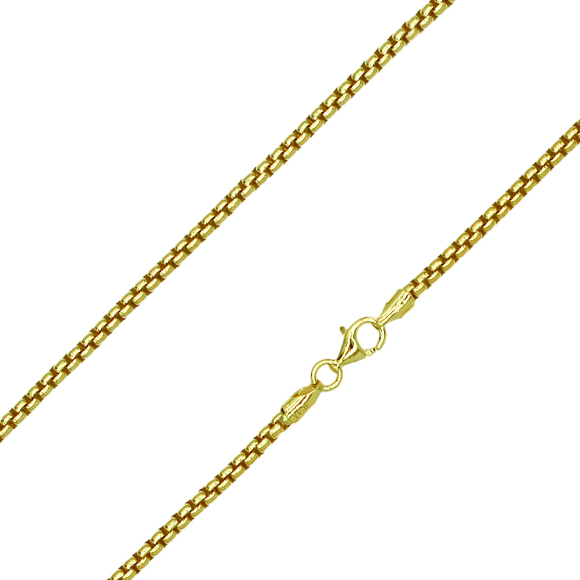 Stay on the cutting edge of fashion with a stylish round box chain. Crafted from solid Italian sterling silver bonded with 18-karat yellow gold, 2.7mm in width, multiple lengths available, secures with a pear-shaped lobster lock.